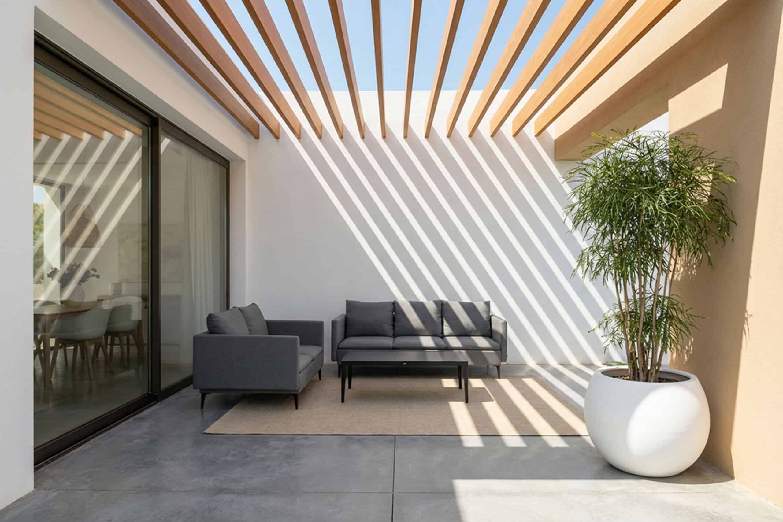 Hunter sofagruppe består av en 3-seter og en 2-seter — sammen med et sofabord med bordplate i keramisk flis. Alt er i sortlakkert aluminium som aldri ruster, og settet gir god sittekapasitet uten å fylle opp for mye plass på terrassen.