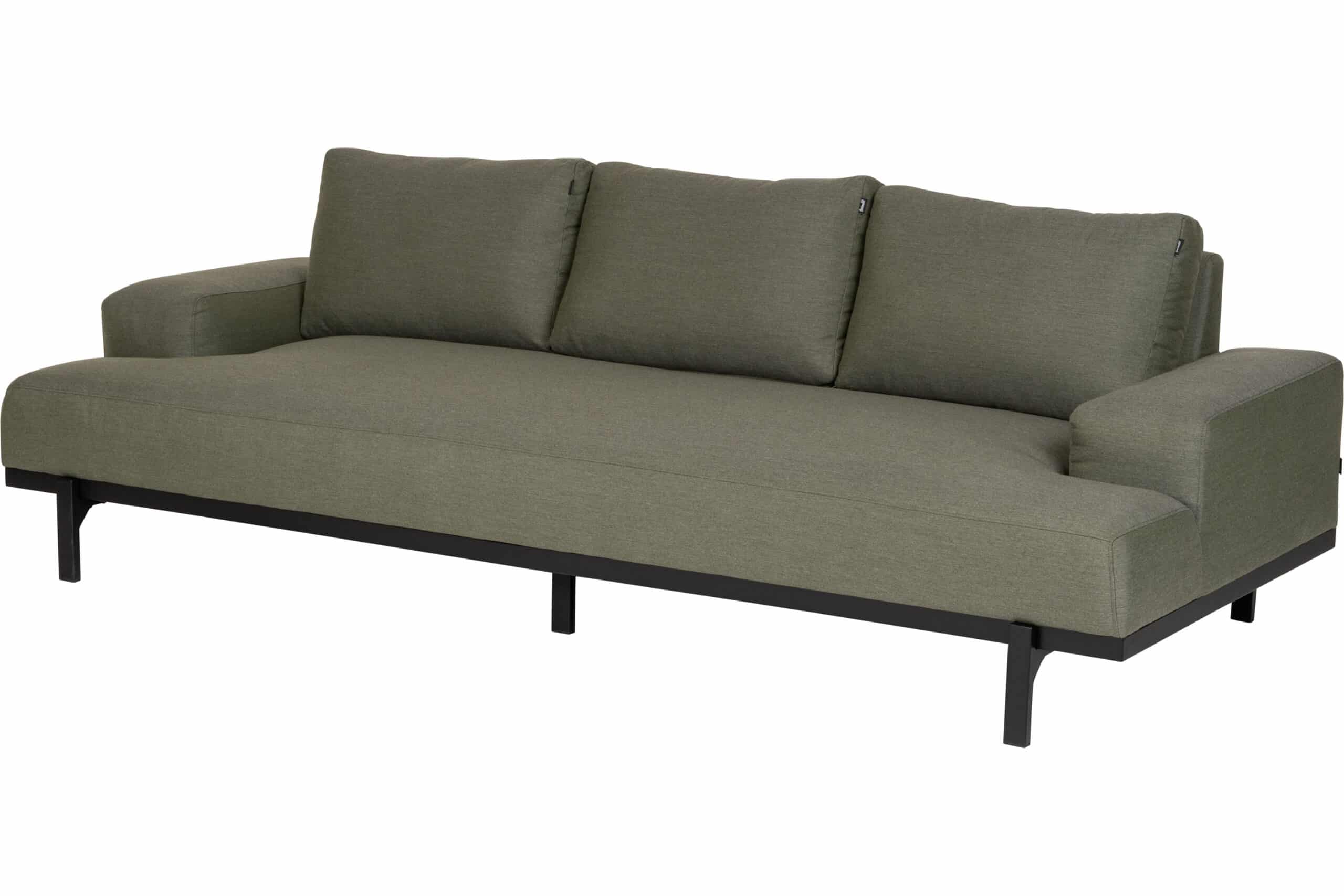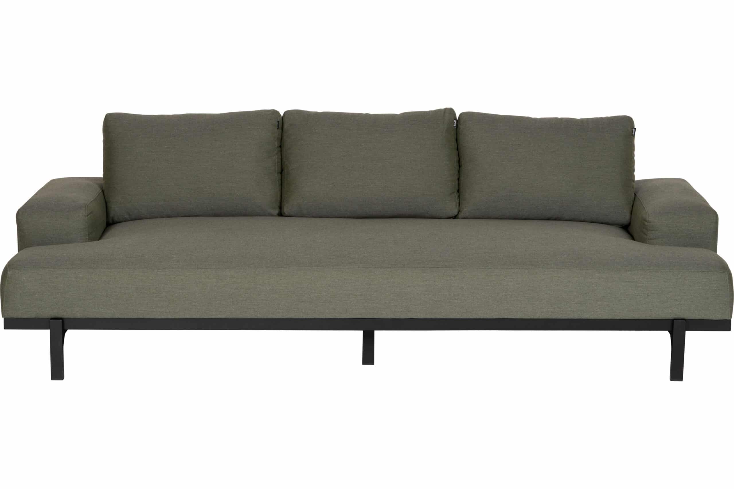 Lekker og romslig 3-seter sofa med komfortable puter som kan stå ute hele sesongen. Ben i sortlakkert aluminium, puter med Sunbrella-tekstil og hurtigtørkende skum. Sunbrella er svært slitesterkt, vann- og smussavvisende og har 5 års garanti mot solfalming.